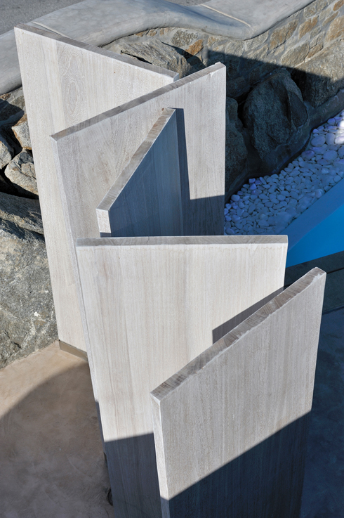 5, 6 테라스, 계단, 돌로 된 벽, 차양과 큐빅 스타일의 건축 구조는 이 섬에서 찾아볼 수 있는 단 하나의 컬러인 화이트를 공통 코드로 이용했다.