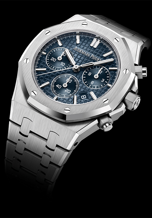 오데마 피게가 새로운 로열 오크 크로노그래프 38mm 모델을 공개했다. 수직 클러치 시스템을 갖춘 일체형 칼럼 휠 크로노그래프 무브먼트인 셀프 와인딩 칼리버 6401을 장착한 것이 특징이다. 38mm 로열 오크 모델에 최초로 적용한 사파이어 크리스털 케이스 백을 통해 정교한 구조를 드러내며, 새틴 브러시 처리한 경사면으로 고급스럽게 마감했다.