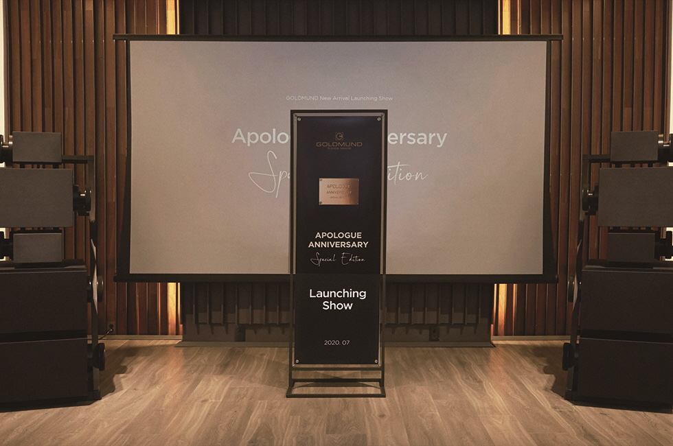 스위스 명품 오디오 브랜드 골드문트에서 아폴로그 탄생 25주년 기념 한정 시리즈를 아폴로그 스페셜 에디션으로 새롭게 출시했다. 전작에 비해 더욱 강력해진 저음역대가 특징이며 시간 조정 작업을 골드문트만의 독자적인 기술력으로 처리해 청각 피로 없이 자연음과 99% 일치하는 리얼 사운드를 감상할 수 있다. 음향 기술뿐 아니라 뉴욕 현대미술관에 전시될 정도로 훌륭한 예술적 면모도 돋보인다.