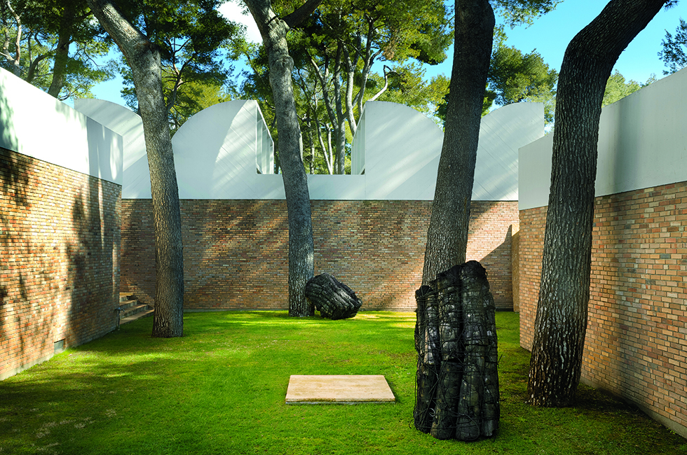 4 마그 재단 미술관 정원의 소나무 밑동에 놓인 숯 작품들 ‘불에서 나온’, Exhibition view in Fondation Maeght, Photo by Serge Miserez/Courtesy of the Artist.