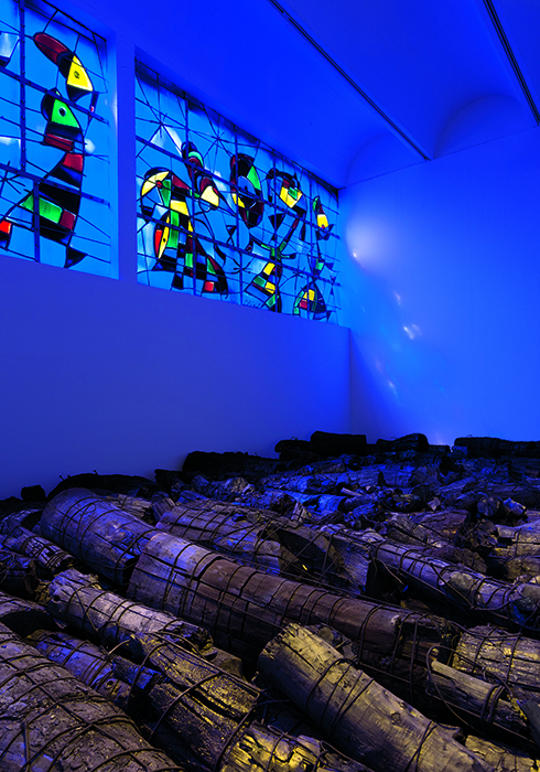 5 마그 재단 미술관에 있는 미로의 스테인드글라스 전시실에 펼쳐진 이배의 숯 작품 ‘풍경’, Exhibition view in Fondation Maeght, Photo by Serge Miserez/Courtesy of the Artist.