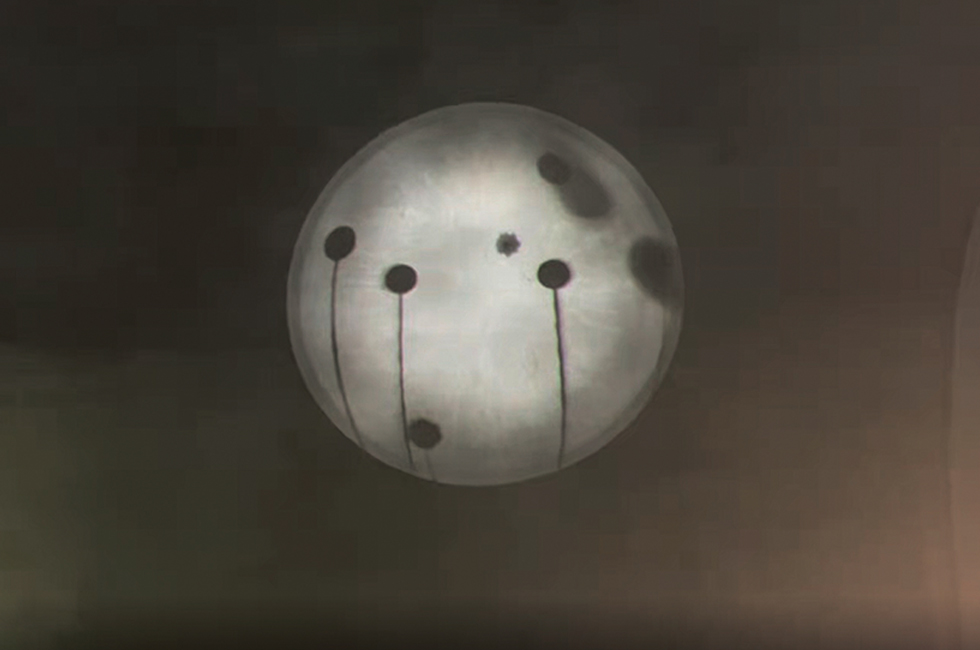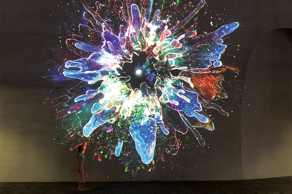 에릭 오(Erick Oh)의 2022년 신작 <오리진(Origin)>은 <오페라(Opera)>(2020)의 프리퀄 연작으로 우주, 생명, 인류의 존재와 ‘기원’의 문제를 다루고 있다. 영상은 하얀 안개가 피어오르는 텅 빈 공간에서 시작된다. 이윽고 행성(지구 혹은 미지의 행성)을 둘러싼 얼음(혹은 반투명 유리처럼 보이는 물체)이 균열을 일으키며 영상의 변화를 이끈다. 검은 점이 하나씩 생겨나며 검은 액체가 흘러내리는데, 마치 사람이 흘리는 눈물처럼 보이기도 한다. 행성은 어둠으로 뒤덮이는 듯 보이다가 강렬한 사운드와 함께 꽃잎 형상으로 폭발해버린다. 환상적인 꽃잎은 거대한 사운드와 함께 보라색과 푸른빛으로 피어나고, 꽃송이 한가운데에서 신비로운 노란빛 태양과 행성을 둘러싼 회색빛 행성이 출현하지만 이내 사라진다. 회색빛 작은 행성이 사라진 뒤, 마침내 가장 처음에 등장했던 행성으로 돌아간다. 러닝타임은 5분이지만 무한 반복되는 이 작품은 ‘시작과 탄생, 인류의 변화, 성장, 죽음, 소멸’로 이어지는 긴 여정을 통해 우리에게 ‘어디서 왔으며, 어디로 가고 있는지’ 질문하도록 이끈다. 아름다움과 장엄함, 절망과 희망, 공허함과 두려움, 행복과 환희, 선과 악 등 다양한 감정으로 반응하게 만들지만, 서사를 분명히 설명할 수 없는 신비함을 담고 있다. <오리진>은 특히 코스모스(cosmos)가 공간의 의미와 함께 아름다움과 조화를 뜻한다는 사실을 새삼스레 깨닫게 한다. <오리진>은 <오페라>처럼 설치와 영화를 위해 기획되었고, 제작 기간만 2년이 걸렸다.