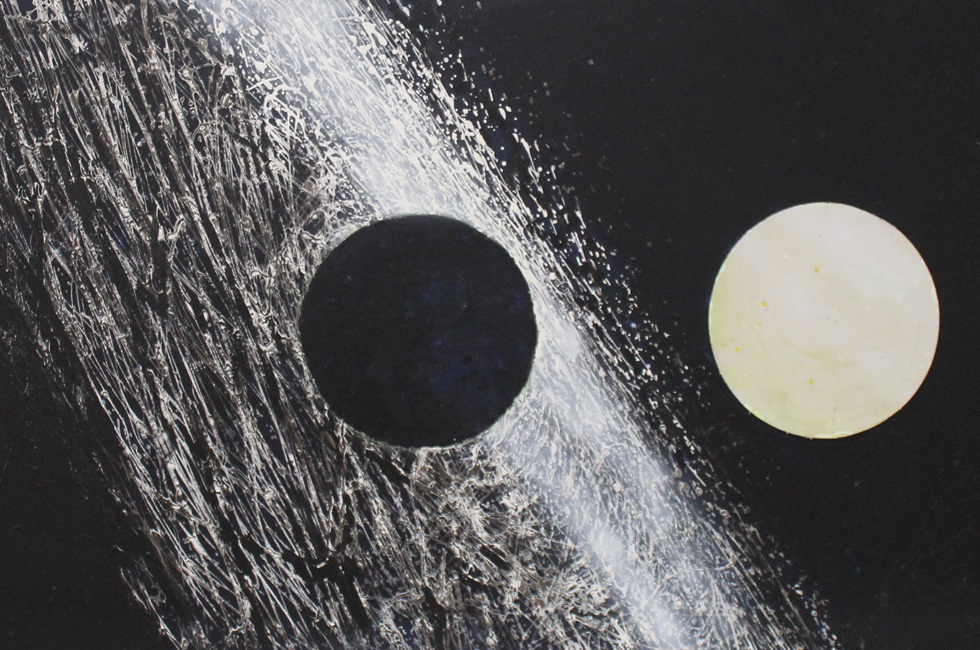“인간은 별의 일부분이며 이 공간 속에서 잠깐 있다가 없어지는 시간과 같다. 그러나 필시 시간이란 애초에 없는 것이니 우리의 존재란 공허에 다름 아니다. 우리는 공간의 일부를 점거하다 사라지며, 없어진 후 어디에든 머무르리라는 가설은 근거 있다.” ‘우주의 작가’로 불리는 오경환 화백은 1969년 아폴로 11호가 달 표면에 착륙해서 바라본 지구의 모습을 TV를 통해 지켜본 순간을 아직도 기억하고 있다. 그는 이때 ‘처음으로 거울을 통해 자신을 본 인류가 된 듯한 기분’을 느꼈다고 회고했고, 이 사건은 그의 작품 세계에 큰 변혁을 가져왔다. 이후 40년이 넘도록 작가는 우주를 표현하고 있고, 칠순이 넘은 현재에도 그의 힘찬 에너지는 지속되고 있다. 그의 작품은 추상적이고 관념적일 수밖에 없는 우주에 의미를 부여하는 낭만이 있으며, 한편으로는 ‘사(死) 즉 생(生)이요, 실(實)은 허(虛)’라는 개념을 전제로 한 동양의 우주관이 느껴지기도 한다(http://dmma.daejeon.go.kr).