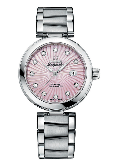 유려한 곡선 케이스에 화려한 다이얼을 매치한 외관은 레이디매틱만의 시그너처다. 화이트, 핑크 자개 혹은 래커 칠한 블랙, 퍼플, 그레이 컬러 다이얼의 중앙에서부터 회오리치듯 펼쳐지는 수퍼노바 패턴은 카리스마와 아름다움을 뽐낸다. 케이스와 조화를 이루는 메탈 브레이슬릿은 특허 받은 버터플라이 버클 3줄 스크루 핀 디자인을 채택하고 있고, 정교하게 가공한 다양한 컬러의 새틴 스트랩도 출시하고 있다. 올해에는 레이디매틱 컬렉션에 18K 레드 골드와 스테인리스스틸을 믹스한 새로운 모델을 추가해 선택의 폭을 넓혔는데, 레이디매틱 고유의 여성스러운 아름다움을 그대로 지켰다. 조금 더 화려하고 우아한 디자인을 원한다면 다이아몬드 세팅 베젤을 추천한다. 다이얼에 다양한 크기의 다이아몬드를 흩뿌리듯이 배치한 스노 세팅은 페미닌 워치 디자인에 환상적인 판타지를 더한다. 결국 패셔너블하면서도 뛰어난 기계식 무브먼트를 장착한 손목시계를 원하는 여성들의 바람을 만족시키기에 충분한 시계가 바로 레이디매틱인 것이다. 스위스 시계와 동의어라고 할 수 있을 만큼 차곡차곡 진지하게 명성을 쌓아온 워치 브랜드 오메가는 시계 역사에 수많은 족적을 남겼다. 이제 오메가는 기술적 성취를 넘어 현대 여성에게 ‘오토매틱 워치’라는 새로운 메시지를 전했고 그 결과는 성공적이다. 모두에게 시계의 가치를 이야기하고, 여성을 위한 오토매틱 워치 ‘레이디매틱’이 이야기하는 오메가의 정신, 그 놀라운 혁신적 메시지는 59년을 이어 21세기에 다시금 빛을 발하고 있다. 문의 02-511-5797