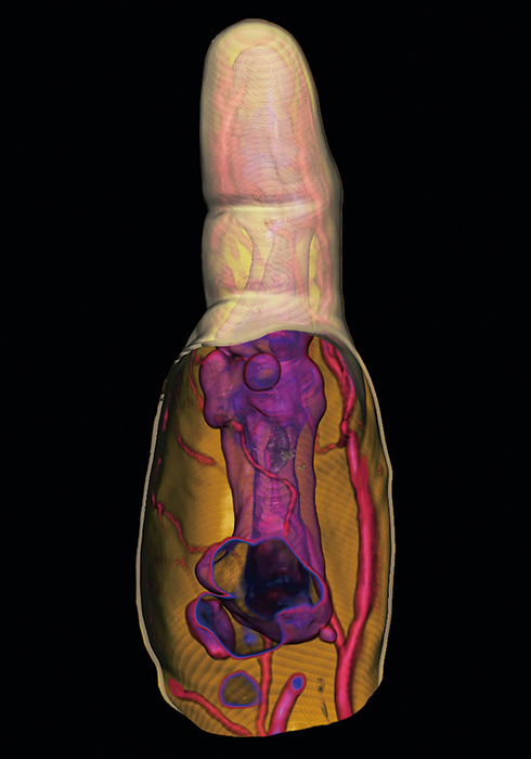 7 그자비에 루케치, ‘엄지(Pouce)’, 60Χ60cm N°1/4, Medical Scanner, 2007. 엄지 속에 디지털 산수화를 펼쳐놓았다.