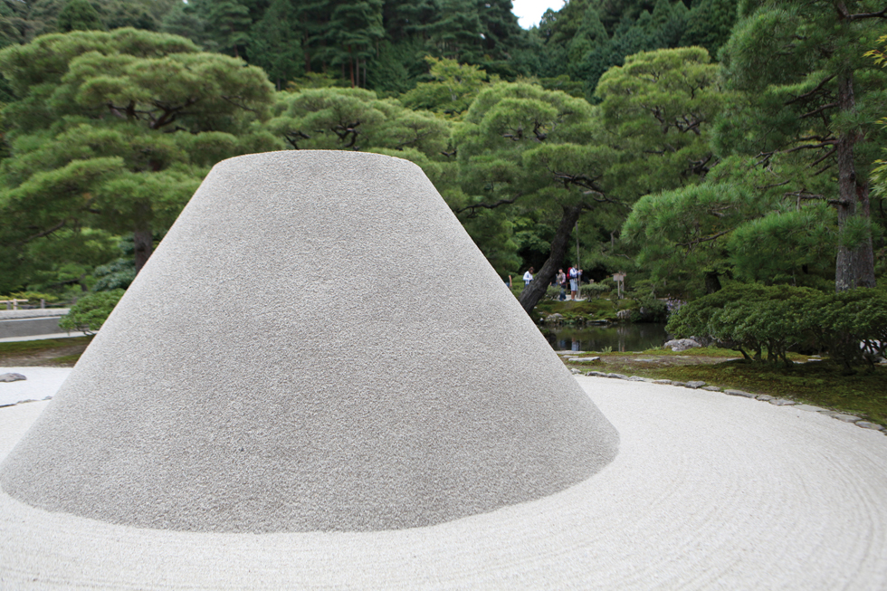 입구에는 풀 한 포기 없이 온전히 모래만으로 후지 산과 물을 형상화해낸 고게쓰다이(달맞이 사구),  자로 잰 듯 정확한 각도로 이랑 무늬를 낸 모래 정원이 있는데, 그 정확하고도 세밀한 솜씨에 감탄을 하지 않을 수 없다. 다도, 향도 등 일본 미의식의 원류라 불리는 긴가쿠지는 바라만 봐도 마음이 편안해지는 고아한 매력을 지닌, 참으로 아름다운 건축물이다. www.ginkaku-ji.or.jp