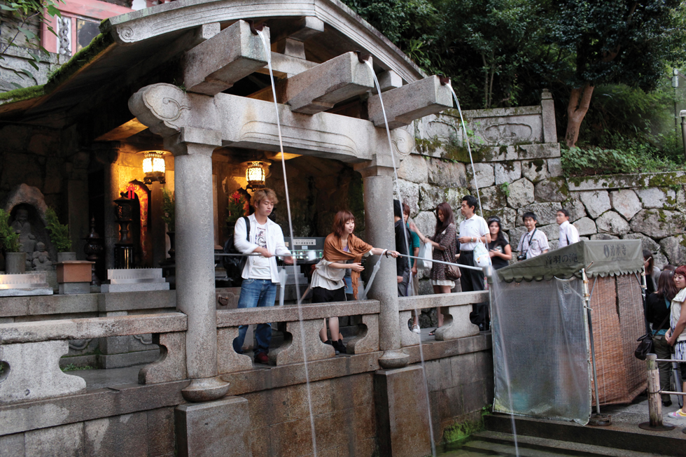 일본인들이 가장 사랑하는 교토의 명소, 기요미즈데라. 관광객의 입장에서 기요미즈데라를 반드시 방문해야 하는 이유는, 고고한 매력을 지닌 기요미즈데라 혼도(본당)의 모습과, 이 사찰에서 내려다보이는 교토의 절경 때문만은 아니다. 고조자카, 산네이자카, 니넨자카, 네네노미치로 이어지는 좁은 골목길의 풍경이 교토 내에서도 가장 교토스러운 모습을 보여주기 때문이다. 세계문화유산으로 손꼽히는 기요미즈데라의 본당에는 산의 경사면에 세운 ‘부타이’ 라 부르는 거대한 베란다가 있다. 부타이는 단 하나의 못도 쓰지 않고 1백72개의 나무 기둥을 교차시켜 만들었다는 믿을 수 없는 사실 때문에 세계적인 불가사의 중 하나로 손꼽힌다고 한다. 오래된 사찰답게 예로부터 전해져 내려오는 여러 가지 스토리가 있는데, 그중 하나가 ‘오토와노나키’ 라 불리는 세 갈래의 물줄기.
