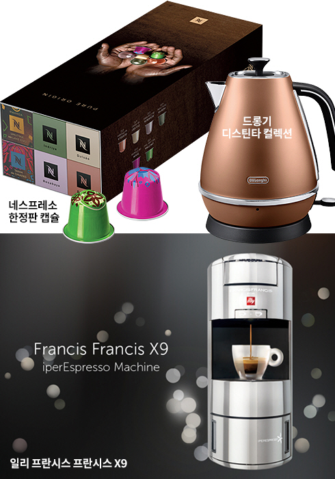 평범한 일상에서 잔잔하게, 또는 상큼하게 빛나는 소품은 삶에 윤기를 더해준다. 주방이라고 예외는 아니다. 아니, 요즘은 다른 어떤 공간보다 주방이나 작업실에 신경 쓰는 경우가 많다. 더 건강하고, 즐겁고, 편리한 식문화에 대한 관심이 점점 더 커져가고 있기 때문일 것이다. 그런 수요를 반영하듯 브랜드 감성을 투영한 주방 기기와 소품이 잇따라 나와 주목된다. 네스프레소는 캡슐 커피 머신만이 아니라 캡슐 자체 디자인으로도 인정받는 브랜드인데, 올 초 야심 차게 선보인 한정판 캡슐은 그런 감각을 여실히 보여준다. 단일 원산지 커피로 만들었다는 맥락에서 ‘퓨어 오리진’ 이라는 수식어가 붙은 ‘르완다 레이크 키부’와 ‘멕시코 치아파스’ 2종으로, 봄날의 신선함을 상기시키는 색상의 조합이 돋보인다. 각각 커피 생산지로 주목받고 있는 르완다의 키부 호수와 멕시코의 치아파스 지역의 이름을 딴 것이다.  네스프레소는 이 2종의 한정판 캡슐의 론칭을 기념해 국내 인플루언서로 발탁한 배우이자 화가 하정우의 최신작을 모은 전시회도 열었다. 현재 ‘유’, ‘유밀크, ‘라티시마 터치’ 등 네스프레소 3종 기기 할인 행사도 진행 중이다. 열혈 팬층을 거느린 이탈리아 브랜드 일리(iLLY)의 경우에는 어느 공간에서나 은근하게 조화미를 발하는 캡슐 커피 머신이 호응을 얻고 있다. ‘프란시스 프란시스 X9’이라는 30만원대 모델이다. 타원형에 은빛 크롬 알루미늄 케이스를 적용한 제품으로 투입구를 열지 않은 상태에서 물만 보충할 수 있다는 것이 장점. 원터치 버튼으로 ‘에스프레소, 또는 ‘에스프레소 룽고’ 중 하나를 택해 커피를 추출할 수 있다. ‘디자인’으로는 둘째가라면 서러워하는 브랜드 드롱기의 ‘디스틴타(Distinta)’ 컬렉션도 눈길을 끈다. 크롬 도금 처리한 무광 메탈 소재가 세련미를 풍기는 이 제품 라인은 커피 메이커, 전기 주전자, 토스터 등 3종 시리즈도 구성돼 있다.