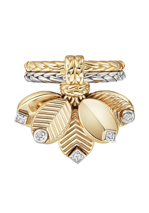 커피 원두에서 영감받아 절대적 우아함을 담아낸 까르띠에의 ‘그랑 드 카페(Grain de Cafe´)’ 컬렉션을 새로 선보인다. 1938년 크리에이티브 디렉터 잔느 투상이 처음 선보였고, 이후 모나코 대공비가 된 배우 그레이스 켈리가 착용하면서 1950년대에 세계적으로 아이코닉한 주얼리로 부상한 히스토리를 담고 있어 더욱 특별하다. 커피 원두의 둥글고 풍성한 형태에서 영감받았으며, 자연에 대한 메종의 비전, 대담함과 자유분방함을 여과 없이 표현했다. 기품 있게 반짝이는 골드 소재는 프랑스 리비에라(Riviera)의 태양을 떠올리게 하며, 다이아몬드 및 루벨라이트 스터드를 세팅한 피스는 약간의 움직임에도 섬세하게 흔들려 아름다움을 배가한다. 문의 1877-4326