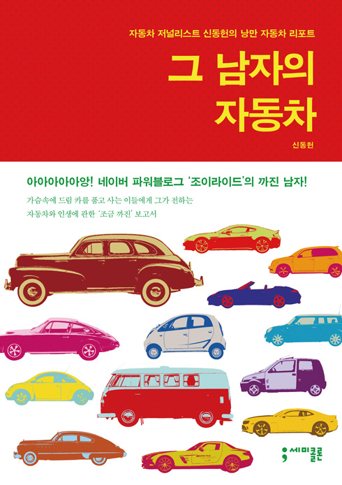 자동차 애호가라면 누구나 한 번쯤 이름 석 자를 들어봤을 법한 국내 스타 블로거의 신나는 ‘카 리포트(car report)’가 한 권의 책으로 엮여 나왔다. 자동차 전문 저널리스트로 이 분야의 막강한 ‘파워 블로그’인 ‘조이라이드(http://blog.naver.com/joyrde)’를 운영하는 남성지 <레옹>의 신동헌 부편집장의 에세이집 <그 남자의 자동차>다. 저자가 10년 넘게 자동차 저널리스트로 활약하며 쌓은 경험을 바탕으로 한 이 책은 엄청난 성능을 갖춘 슈퍼카 시승기부터 세계 유수의 명차에 얽힌 이야기, 각자의 라이프스타일에 적합한 자동차 고르는 법, 그리고 업계에 대한 신랄한 비판까지, ‘카홀릭’이라면 누구나 솔깃할 만한 흥미진진한 내용을 가득 담고 있다. ‘바퀴 6개를 다룰 줄 알아야 진짜 남자’라고 믿는다는 저자는 자동차와 모터사이클에 대한 편견을 없애고 더 많은 이들에게 ‘즐거운 라이드’의 미학을 알리기 위해 ‘까남(까진 남자의 줄임말)’이라는 닉네임으로 블로그를 운영하고 있는데, 하루 평균 방문자가 2만 명 수준이란다. 가격 1만6천원(세미콜론 펴냄).