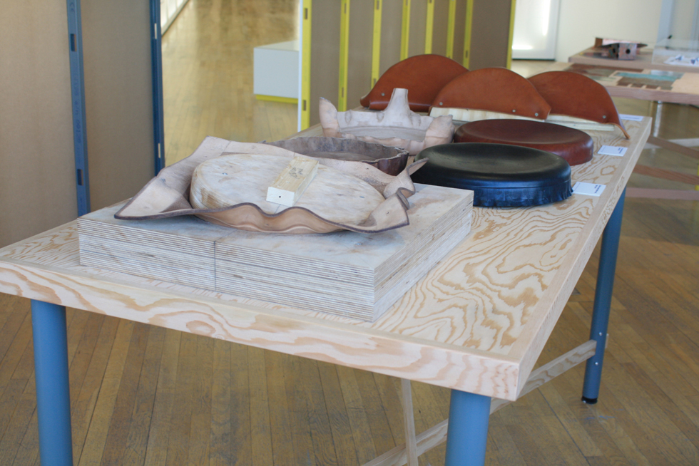 6 가죽을 삶아 좀처럼 변형되지 않는 단단한 형태로 가공하는 ‘퀴르 부이(cuir bouilli)’ 기법으로 제작한 등받이 없는 의자.
