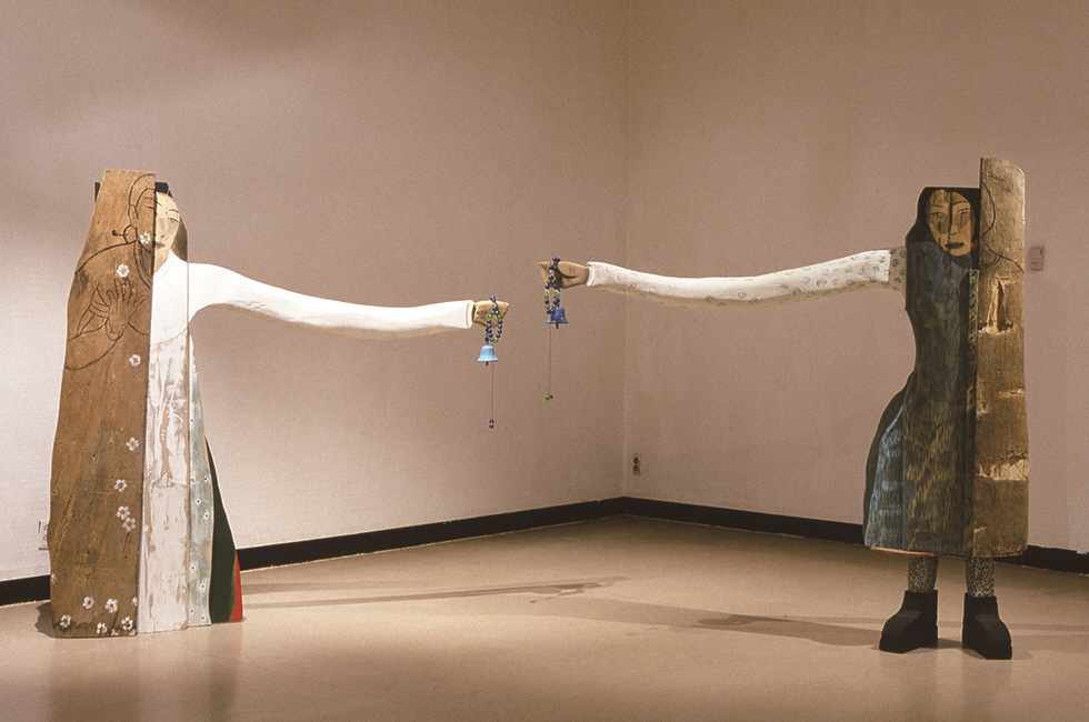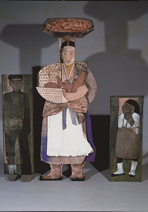 변변한 정규 교육과정도 밟지 않은 주부 출신 미술인. 당연히 미술 생태계에서 환영할 만한 ‘스펙’은 아니었지만 그녀는 친구를 통해 알게 된 또래 여성 작가들과 어울리면서 작업을 해나갔다. 그렇게 만난 13명의 여성 미술인이 돈을 모아 구반포 근처에 작업실도 함께 얻었다. 그러다 우연한 기회에 문예진흥원 미술회관(현 아르코미술관)에서 개인전을 열고 회화 작품을 선보였다(1982년). 주제는 ‘어머니’. 그녀 자신의 어머니와 장사하는 여성들을 사실적으로 묘사했는데, 이 전시로 호평을 받으면서 <제1회 82인간11전(인간전)>에도 참가하는 물꼬가 트였다. 이후 그룹전에 참가하기도 하고 미국 뉴욕에서 체류하면서 해외 동향을 몸소 익히기도 하는 등 부지런히 달리던 그녀는 1985년 한국 여성주의 미술사에서 의미 있는 자취로 여겨지는 ‘시월모임’을 결성한다. ‘구반포 모임’에서 만나 ‘결혼한 또래 작가’라는 공통분모를 바탕으로 친분을 다져온 김인숙, 김진숙, 윤석남 등 3인방이 뭉친 것. 러시아의 10월 혁명에서 따온 ‘시월모임’ 멤버는 1985년과 1986년 두 차례 전시를 가졌는데, 첫 전시는 ‘주부 화가’ 정도로 불리면서 별다른 주목을 받지 못했지만 <반(半)에서 하나로>라는 두 번째 그룹전은 여성주의 미술의 출현을 예고한 최초의 전시로 언론과 문화 예술계, 그리고 여성운동계의 이목을 끌었다. 당시 윤석남의 출품작은 생계와 가사를 위한 노동과 양육 등으로 고달픈 어머니의 희생을 그린 ‘손이 열이라도’(1986). ‘어머니’라는 주제는 그 후로도 10년에 걸쳐 윤석남의 작품 세계를 지배했다. 1993년 금호미술관에서 두 번째 개인전을 가졌는데, 전시 제목이 <어머니의 눈>이었다. 이때 처음으로 그녀는 버려진 목재를 조립해 여성의 신체를 입체적으로 조각하는 설치 작업을 선보인다. 브롱스 미술관의 남미 작가전을 보고 귀국한 뒤 강릉에 있는 허난설헌 생가를 방문했는데, 당시에 주워 온 감나무 가지에서 영감을 받아 자신만의 나무 작업을 탄생시킨 것이다. 시작은 개인적인 서사였지만 어머니의 존재는 가부장적 사회에서 인내로 점철된, 하지만 치열하게 살면서도 당당함을 추구했던 한국 여성의 삶을 투영하고 있기에 공감대를 불러일으켰다. 그리고 대안적 여성주의 문화 운동을 꾀했던 단체 ‘또 하나의 문화’와의 교류를 비롯해 페미니스트 잡지 <이프>를 발행하는 등 다양한 활동을 벌이고 작품에는 역사 속 인물들도 반영하면서 여성들의 연대를 확장하는 데도 앞장섰다. 사실은 페미니즘이라는 단어 자체도 생소했던 시기에 그저 자신을 쏟아내기 위해 미술을 시작했지만 그녀는 ‘여성주의 미술가’라는, 자칫 프레임에 갇힐 수도 있는 표현을 거부하지는 않았다. “나에겐 이 땅에 여성으로 태어났고 여성으로 살 수밖에 없는 현실이 바로 페미니즘을 불러온 것 같다. (하지만) 페미니즘이라는 말을 붙이지 않아도 그럴 것이다.” 시인 김혜순과 나눈 대담에서 그녀가 직접 한 말이다. 결국 거창한 논리가 아니라 스스로의 주체가 되기 위해 그저 있는 그대로의 나를, 공정한 시각으로 봐달라는 외침이 아니겠는가.