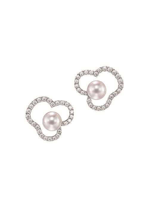 각각의 꽃이 즐겁게 노래하는 듯 리듬감 있는 아름다움을 자아내는 찬트 이어링은 최상급 아코야 진주와 다이아몬드를 사용해 그래피컬하면서도 부드러운 분위기를 자아낸다.