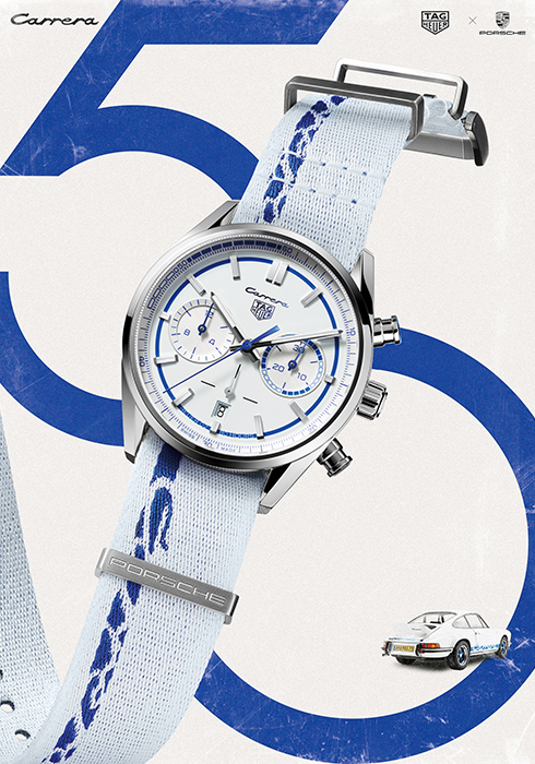 역사와 가치를 공유하는 태그호이어와 포르쉐의 ‘911 까레라 RS 2.7’ 탄생 50주년을 기념하는 새로운 리미티드 에디션 타임피스를 출시한다. 글레이저 블루(Glazier Blue) 컬러의 ‘911 까레라 RS 2.7’ 차량에서 영감받은 블루 에디션과 포르쉐의 가드 레드(Guards Red) 컬러의 ‘911 까레라 RS 2.7’ 차량으로 디자인한 레드 에디션, 2가지로 선보인다. 이번 에디션은 전 세계 블루 에디션 5백 개, 레드 에디션 2백50개 한정으로 출시하며, 국내에서는 블루 에디션만 판매할 예정이다.