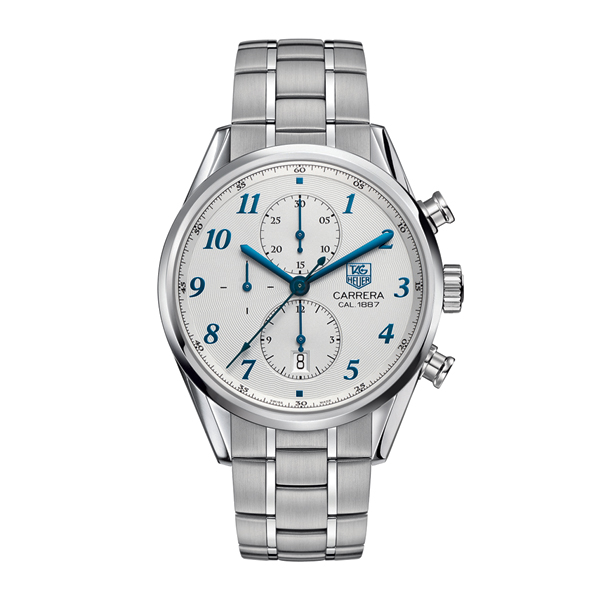 블루 핸즈가 돋보이는 까레라 칼리버 1887 헤리티지 크로노그래프 41mm 워치