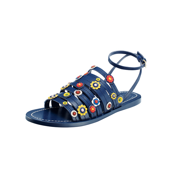 다양한 컬러의 꽃 패치로 장식한 스트랩 샌들
