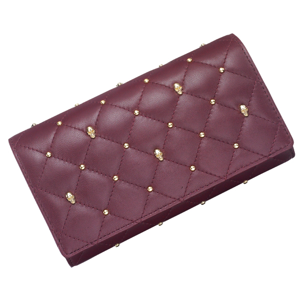 해골 장식이 유니크한 버건디 컬러 장지갑