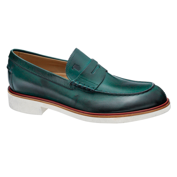화이트 굽이 돋보이는 그린 컬러 소가죽 로퍼