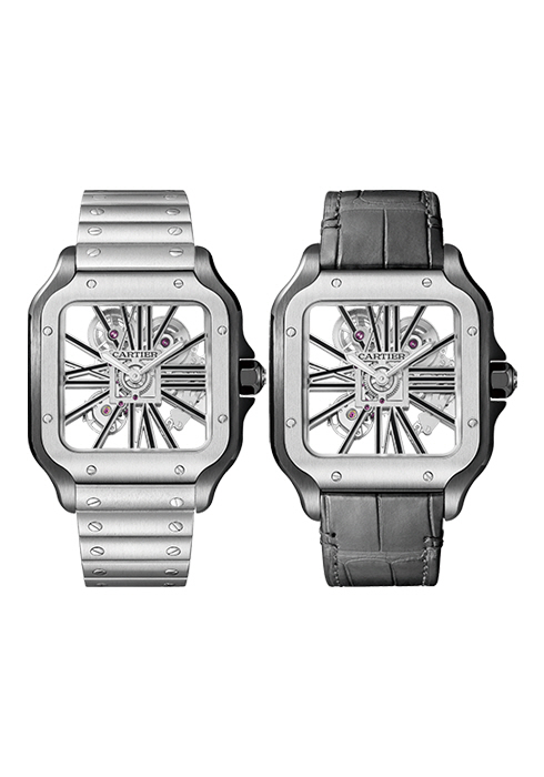 1904년 루이 까르띠에가 비행사들이 비행 중에도 시간을 확인할 수 있도록 고안해 탄생시킨 산토스 워치. 이 선구적인 손목시계는 기하학적 다이얼과 조화로운 곡선형 혼, 시선을 사로잡는 상징적인 스크루와 함께 까르띠에의 아이콘으로 거듭났다. 이후 지속적인 발전에 이어 스켈레톤 워치라는 장르에 새로운 도전장을 내민 산토스 드 까르띠에. 블랙 ADLC 스틸 케이스에 그레이 스피넬 1개를 세팅한 칠각 크라운과 검 모양의 그레이 스틸 핸즈, 사파이어 글라스와 케이스 백까지, 산토스 워치를 더 완벽하게 고안했다. 여기에 그레이 래커 장식 로마숫자 스켈레톤 브리지로 표시되는 시와 분, 20개의 루비를 포함한 1백38개의 부품으로 구성된 까르띠에 매뉴팩처 매뉴얼 와인딩 메캐니컬 무브먼트 9611 MC 칼리버의 정교한 움직임을 확인할 수 있다. 문의 1877-4326