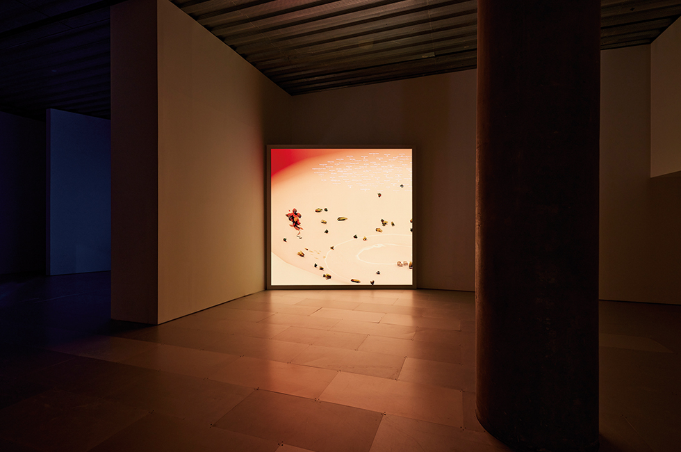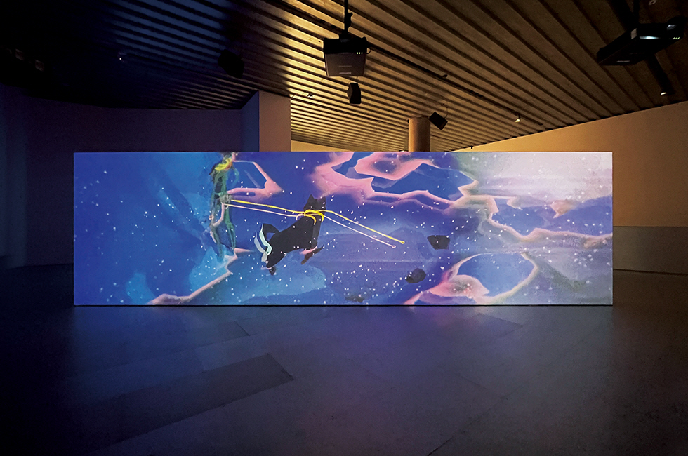언뜻 보면 그저 단편 애니메이션이나 세련된 게임 화면 같은 느낌이 든다. 다분히 미래적으로 보이는 가상 공간에 캐릭터들이 꼬물꼬물 움직이고, 사건이 일어나고, 자세히 들여다보면 묘하게 생동감 있는 화면이 이어진다. 이렇듯 리움미술관의 블랙박스 전시장에 들어가면 우선 결이 비슷한 영상들이 4개의 스크린을 수놓고 있는데, 미국 캘리포니아 출신인 이안 쳉(Ian Cheng) 작가의 ‘사절(Emissaries)’ 3부작 시리즈다. 1984년생으로 아직 30대인 이안 쳉을 처음으로 세계 미술계에 알린 연작인데, 가상의 생태계에서 인공지능(AI)를 지닌 등장인물과 자연환경이 서로 교류하고 반응하면서 늘 새로운 사건이 일어나는 ‘라이브 시뮬레이션’ 형식의 작품이다. 작가의 표현을 빌리자면 ‘영원히 플레이되는 비디오게임’ 같은 것으로, 스토리의 중심축인 ‘사절’이 임무에 성공하거나 실패하면 새 ‘판’이 시작된다. 다시 말해 작품은 끝나지 않는다. 사실상 혼자 알아서 무한 작동하는 불사신 같은 게임이나 마찬가지다.