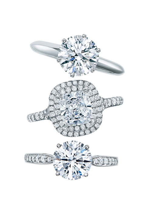 세계 최초로 6개의 프롱이 다이아몬드를 들어 올려 광채를 극대화한 클래식한 ‘티파니 세팅 링’과 두 줄의 비드 세팅 다이아몬드의 화려함이 돋보이는 ‘티파니 솔리스트’, 가장 최근 출시된, 밴드 양 끝이 하나로 모이며 균형을 이루고 촘촘히 세팅한 다이아몬드가 섬세하고 여성스러운 느낌을 주는 ‘하모니 링’으로 구성되었다.