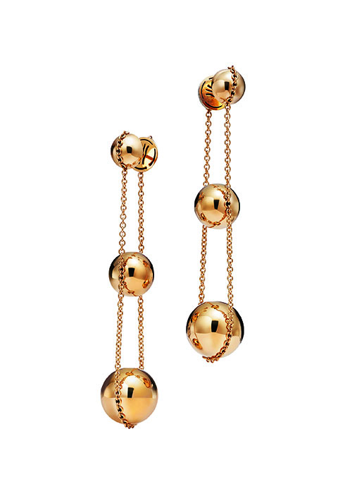 사이즈가 다른 3개의 볼을 길게 늘어뜨린 우아한 디자인이 돋보이며 18K 옐로 골드와 스털링 실버 소재로 출시한다.