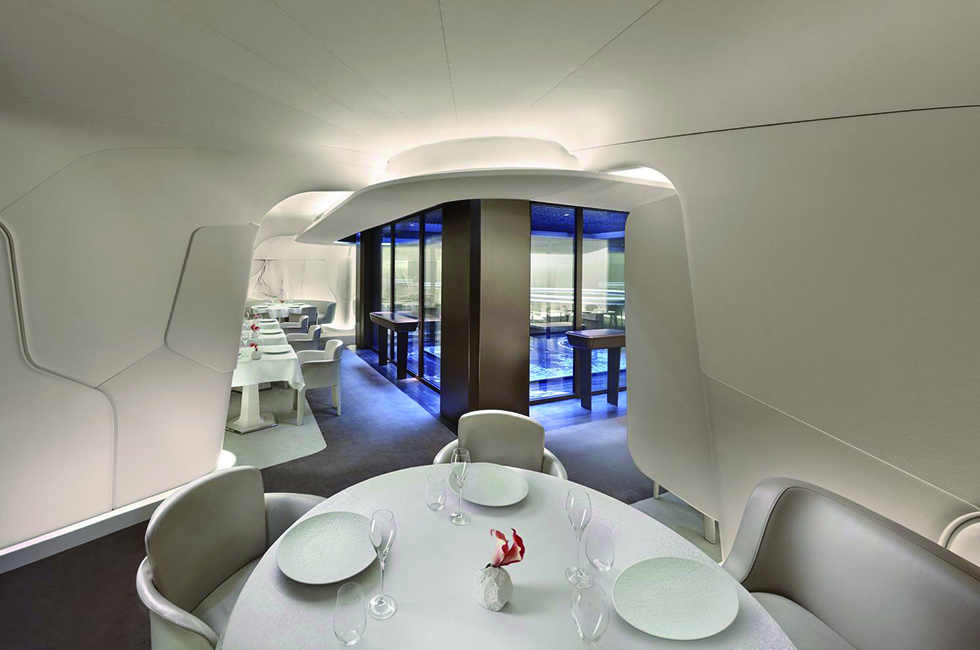 2 스타 셰프 티에리 막스(Thierry Marx)의 건강하고 매혹적인 미식 세계를 접할 수 있는 레스토랑 쉬르 므쥐르(Sur Measure). 호텔 루프톱 가든 등에서 기른 신선한 식재료를 사용한다.