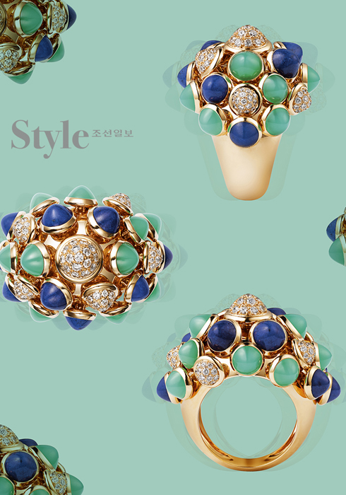 까르띠에는 과감하게 주얼리에 블루와 그린을 매치해 모두를 놀라게 했는데 특히 블루 컬러는 라피스 라줄리라는 컬러 스톤으로 세팅해 더 깊은 블루의 매력을 느낄 수 있어요.