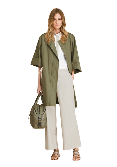 2016 S/S 컬렉션 아이템으로 선보인 트렌치코트는 이번 시즌 메인 컬러인 카키와 함께 웨이스트 라인에 로프 스트링을 더해 보다 편안하고 캐주얼한 룩을 완성한다.