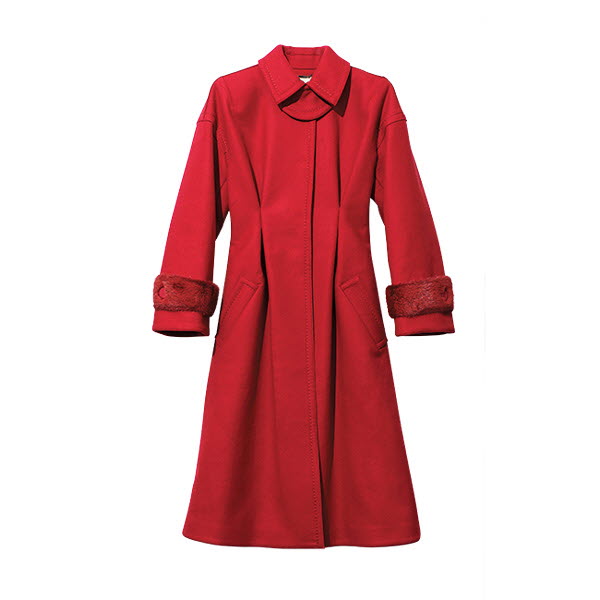 소매의 밍크 트리밍이 포인트인 레드 코트
