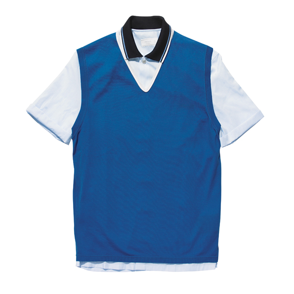 블루 톤의 베이식한 피케 셔츠와 니트 베스트