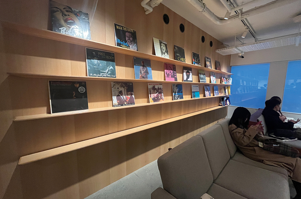 경사지에 세운 건물은 지하 1층과 지상 1층이 외부와 통하도록 설계되어 있다. 지하 1층에는 하루키의 서재를 재현한 특별한 공간과 와세다 대학생들이 운영하는 카페가 자리하며, 1층에는 ‘갤러리 라운지’와 ‘오디오 룸’이 있다. 구마 겐고가 직접 선택한 덴마크 고가구를 내부 곳곳에 놓아두었는데, 이는 안데르센 마을 오덴세에서의 인연을 은유하는 장치가 되어준다. 실제 하루키가 사용하던 가구들도 배치되어 있다. 갤러리 라운지 가운데에는 열댓 명이 둘러앉아도 넉넉할 것 같은 커다란 원목 테이블이 놓여 있고, 양 벽면에는 하루키의 초판부터 다양한 언어로 번역된 작품들이 전시되어 있다. 긴 세월 필력을 이어온 작가의 살아 있는 역사를 보존한 공간으로, 한글 번역본도 시야에 들어왔다. 커다란 테이블에 앉아 시간 가는 줄 모르고 하루키의 소설을 읽고 있는 이들도 눈에 띄었다. 오디오 룸에는 그가 평생 모은 LP 레코드 컬렉션의 일부가 진열되어 있고, 언제 들어도 감미로운 재즈가 공간을 가득 채운다. 이곳에 적용한 사운드 시스템은 하루키의 개인 오디오 어드바이저가 직접 세팅해 작가의 오디오 시스템을 그대로 재현한 것이다. 또 방문자를 위해 곳곳에 놓인 작은 공간마다 하루키의 세계를 다양하게 녹여내고자 한 건축가의 섬세한 배려가 느껴진다.