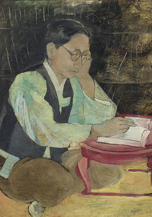 어린 시절 척추를 다쳐 단신에 등이 굽게 된, 그래서 ‘한국의 툴루즈 로트레크’라는 별명을 지닌 화가 구본웅이 ‘절친’인 작가 이상을 강렬하게 담은 초상화. 키가 껑충하게 큰 이상과 대조적으로 작은 구본웅이 함께 다니면 시선을 끌었다고 한다. 캔버스에 유채, 국립현대미술관 소장.