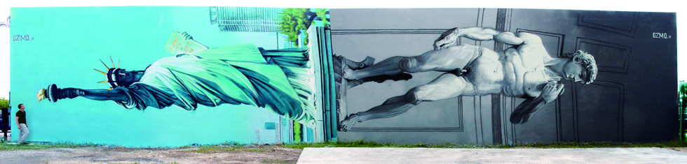 그로부터 1백28년 뒤, 사뭇 대조적인 광경이 펼쳐졌다. 이탈리아의 문화 사절 역할을 맡은 오즈모는 마이애미행 알이탈리아 항공 여객기 짐칸에 스프레이와 페인트만 단출하게 싣고 대서양을 건너왔고, 같은 작품의 설치(?)를 무사히 마쳤다. 전체 스케치에 소요된 기간은 고작 8일, 의뢰 시점으로부터 두 달도 채 걸리지 않았다. 이 영리한 아티스트는 양국의 독립과 자유를 표현하는 대작을 활용해 편견을 벗어난 예술의 독립과 자유, 스트리트 아트의 승리를 위트 있게 그려냈다. 횃불과 돌 대신 스프레이 통을 든 채로 말이다. 어느덧 국가의 친선 예술이 조각을 비롯한 전통성 있는 순수예술에서 소위 하위문화, 저변 문화를 대표하는 스트리트 아트로 변모한 것이다.