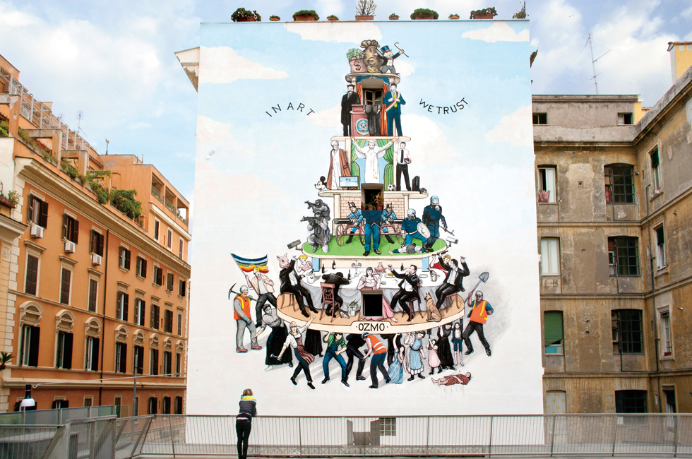 하지만 그는 이런 불편한 현실을 그대로 받아들인 채 전진하는 것이 아티스트의 숙명이라 말한다. 다른 영역에서 새로운 길을 개척했던 과거의 모든 예술가들이 같은 어려움에 도전해오지 않았냐고 물으면서. 이러한 어려움이 경쟁적인 타 영역 아티스트들과 달리 동료를 서로 격려하고 돕는 끈끈한 유대감을 형성하게 되었다고 자랑했다. 오즈모 역시 인터뷰 중 ‘나’라는 표현보다는 타 아티스트들을 포함시킨 ‘우리’라는 표현을 선호했다. 대중과 가장 가까운 곳에서 함께 호흡하고 소통하는 스트리트 아트만의 친근한 매력도 그가 자부심과 사명감을 갖는 이유다. 그는 자신의 작품이 예술계의 기득권층이 아닌 일반 대중이나 소외 계층, 갑(甲)이 아닌 을(乙)과 소통하며 그들의 예술적인 경험을 충족시키는 민주적인 예술이라는 점을 뿌듯하게 여긴다. 미술관을 찾기 힘든 이들이 거주하는 문화 소외 지역이나 서민적인 지역에 파고들어 예술적인 감성과 스토리를 불어넣고 즐거움을 전하며 반응을 지켜보는 것이 그에게는 무엇보다 큰 즐거움이다. 덕분에 그들은 다른 아티스트들이 받지 못한 특별 대우를 받기도 한다. 스트리트 아티스트들은 현장에서 장기간 작업하다 보니 미술관에서 전시를 할 때면 큐레이터보다도 미술관을 운영하는 핵심 인물(!)인 경비원, 엔지니어, 스태프와 더 많은 시간을 보내며 소통할 기회를 갖는다. 오만한 미술 관계자들에 대해 불만과 편견을 가진 직원들조차 현장에서 자신들 이상으로 땀 흘리며 고생하는 아티스트의 모습에 어느덧 무장해제되어 팬이 되고, 타 미술관의 또 다른 실세를 소개해준다고. 덕분에 오즈모는 밀라노의 미술관 관계자들에게 VIP로 환대를 받으며 값비싼 미술관을 ‘프리 패스’하고 있다.