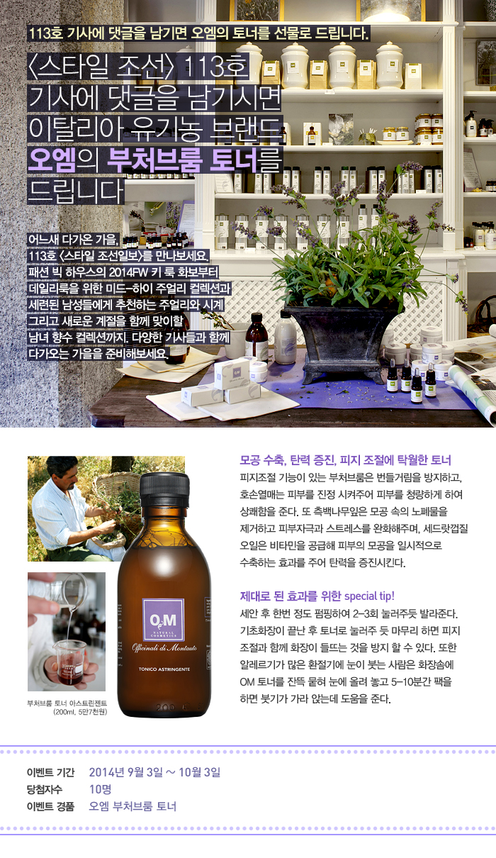 113호 기사에 댓글을 남기면 오엠의 부처브룸 토너를 선물로 드립니다