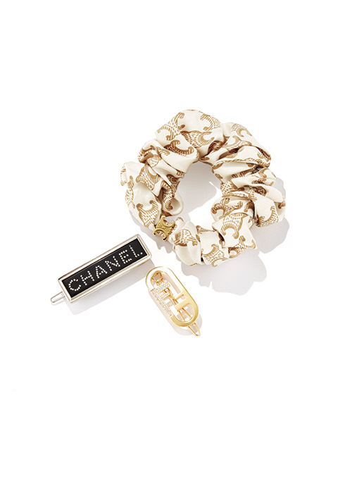 블랙과 골드의 세련된 조합에 스트라스 레터링으로 상징성을 더한 헤어 핀 가격 미정 샤넬. 문의 080-200-2700, chanel.com
