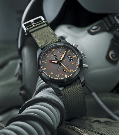 가장 우수한 탑건을 양성하는 기념비적인 장소 미라마를 모티브로 한 파일럿 탑건 미라마. 짙은 회색 세라믹 케이스와 다이얼, 베이지 컬러의 핸즈와 챕터 링, 티타늄 소재의 크라운과 푸시 버튼, 녹색의 패브릭 스트랩 등 개성 있는 모습이 특징이다.
