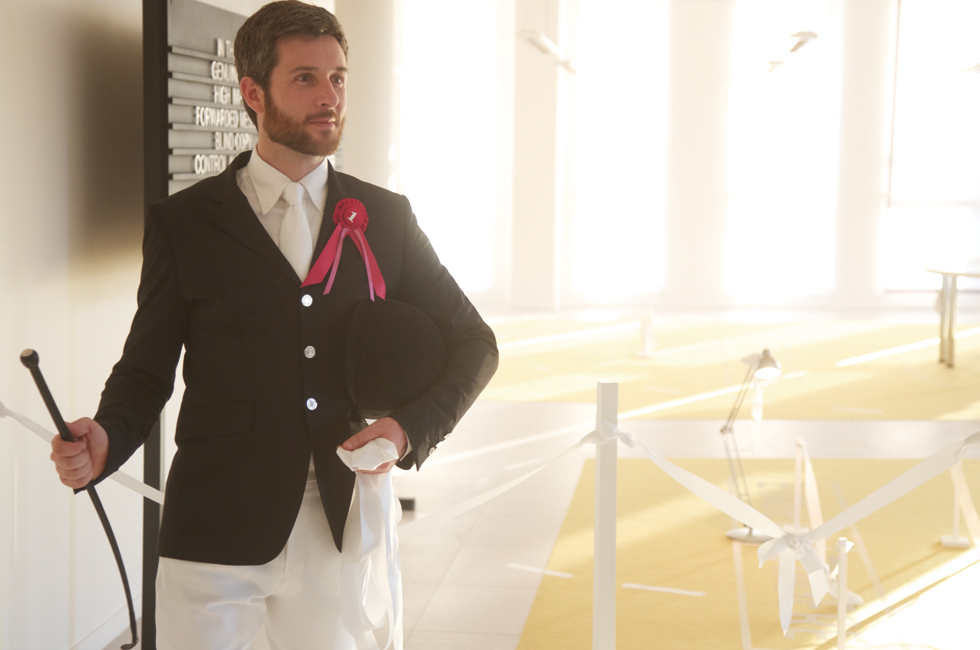 4 펜싱, 수영, 사이클링, 승마 등의 다양한 스포츠를 표현한 모델들이 우아한 워킹으로 에르메스의 테마를 한눈에 보여 주었다. 5 에르메스를 상징하는 대표 스포츠인 승마 코너. 물론 진짜 말이 아닌 말 모형을 가지고 유머러스하게 경기를 진행했다.