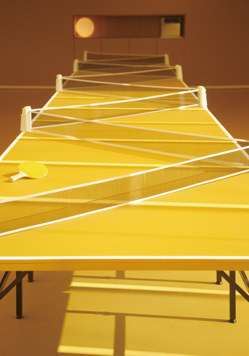 2 네트가 지그재그로 자리한 위트 넘치는 노란색 탁구대. 여러 명이 한꺼번에 움직여가면서 게임을 할 수 있어 더욱 역동적이다.