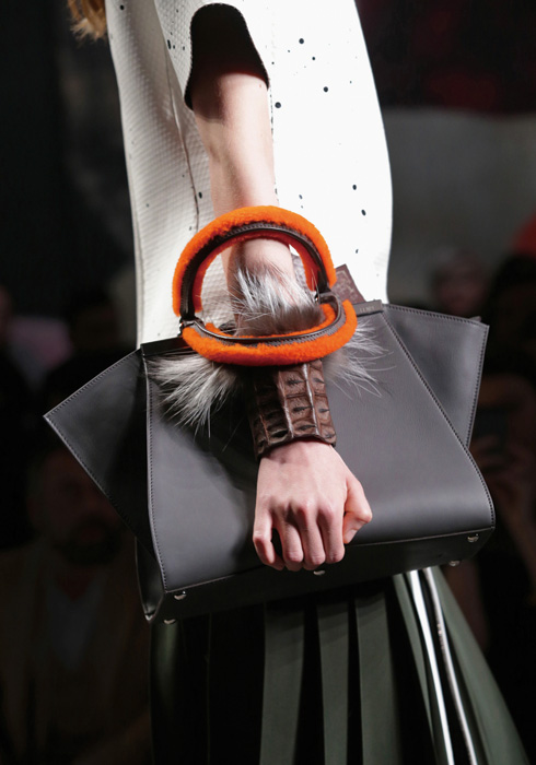 혁신적인 소재의 믹스, 대담한 컬러, 듀얼리즘의 본질을 보여주는 이탈리아 패션 브랜드 펜디. 최상급 모피의 명가답게 겨울은 펜디의 계절이라 해도 과언이 아니다. 2014 F/W 컬렉션의 주제인 ‘퍼 이스케이프’ 모티브는 액세서리까지 확장되었는데, 특히 가방은 펜디의 헤리티지와 가치를 드러내는 핵심적인 아이템. 바게트, 셀러리아, 피카부, 투주르 등으로 이어지는 대표적인 백 컬렉션에 이어 올겨울을 책임질 2개의 뉴 백이 등장했다. 먼저 실용성에서 영감을 받은 ‘바이 더 웨이’ 백은 4가지 스타일로 연출 가능한 스마트한 백. 롱 스트랩을 달아 숄더백이나 크로스 백으로, 또는 스트랩을 빼서 클러치 백으로, 짧은 손잡이를 잡아 토트백으로 들거나 가방 보디에 있는 핸들을 감싸 쥘 수도 있다. 일상생활에 필요한 소지품을 넣을 수 있는 공간과 핸드폰을 넣는 포켓 등이 세분화되어 있어 수납이 편리하다. 부드러운 가죽뿐만 아니라 런웨이에서 선보인 화려한 퍼, 블랙 & 화이트 송치, 악어를 연상시키는 화려한 스터드 장식이 돋보이는 파이톤 갤럭시 버전까지 다양한 스타일과 디자인으로 구성했다. 특히 미니멀한 가죽 백을 악어 꼬리 가죽으로 장식한 독특한 버전도 있다. 도브 그레이, 블루, 레드, 블랙과 같은 클래식한 톤에서부터 오렌지, 블루, 그린 등 포인트를 줄 수 있는 컬러까지 준비되어 있다. 실버 스터드나 플렉시 글라스 스톤과 같은 숨겨져 있는 디테일이 럭셔리함을 더욱 강조한다.