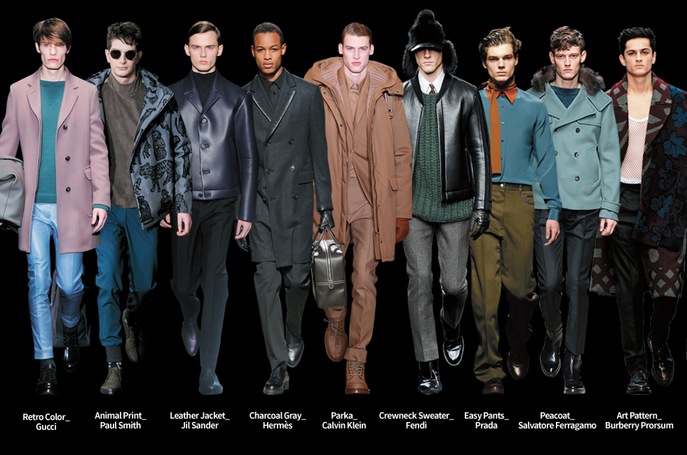 남성 컬렉션이 매 시즌 더욱 기대되는 건 시즌을 거듭할수록 격동적인 변화를 시도하는 맨즈 웨어 시장을 엿보는 재미가 쏠쏠하기 때문이다. 점점 더 진화하고 고급화되는 소재의 변화는 물론이거니와 T.P.O(time, place, occasion)에 따른 스타일의 구분이 모호해지고, 여성스러운 컬러 팔레트와 디테일을 서슴없이 활용하는 것만 보아도 남성복 시장이 얼마나 활기를 띠는지 실감할 수 있다. 남성복에 눈길이 가는 또 다른 이유는 실험적인 시도보다는 실용성을 중시해 구매욕을 상승시키는 커머셜한 아이템이 가득하다는 점이다. 특히 이번 시즌에야말로 절충적이고 웨어러블한 스타일을 제안하려는 시도가 돋보였다. 먼저 위시 리스트에 당장 추가해도 좋을 만큼 다채롭고 실용적인 아우터가 대거 등장했는데, 어떤 종류의 아우터든 한층 젊어졌다는 점이 새롭다. 대표적으로 소재, 길이, 실루엣으로 다양한 변화를 준 피코트를 꼽을 수 있다. 기본 스타일은 유지하되, 소재에 변화를 준 제품이 주를 이룬다. 퍼처럼 보이는 울을 사용해 구조적인 디자인의 피코트를 선보인 엠포리오 아르마니, 피코트에 퍼를 장식적으로 매치한 페라가모가 그 예다. 에르메네질도 제냐는 포멀한 수트에 무심하게 툭 걸친 클래식한 후디 코트를 제안했고, 수트에 파카를 매치한 캘빈 클라인은 보다 활동적인 젊은 감성의 비즈니스 아우터를 선보였다. 수트 역시 캐주얼한 제품이 강세다. 노타이로 연출하고 기장이 짧으며 경쾌한 것이 특징이다. 디스퀘어드2는 클래식한 울 수트의 슬리브와 프런트 패널에 가죽이나 데님 디테일을 패치워크하는가 하면, 루이 비통은 어깨의 패드를 제거하고 주름이 생기지 않는 가벼운 소재를 사용한 위크엔드 수트를 선보였다. 여자가 봐도 탐날 만큼 고급스러운 니트 컬렉션도 주목하자. 목선 가까이 올라오는 크루넥 니트의 약진이 두드러지는데, 셔츠나 재킷에 매치하는가 하면 펜디의 롱 스웨터 코디네이션처럼 아우터 아래로 니트가 드러나게 연출하기도 했다. 목선이 여유로운 터틀넥 니트 또한 매력적으로 다가온다. 보테가 베네타의 터틀넥과 같이 칼라처럼 접어 연출하는 스타일은 목이 짧아 보일까 봐 걱정했던 사람에게 희소식이 될 듯.