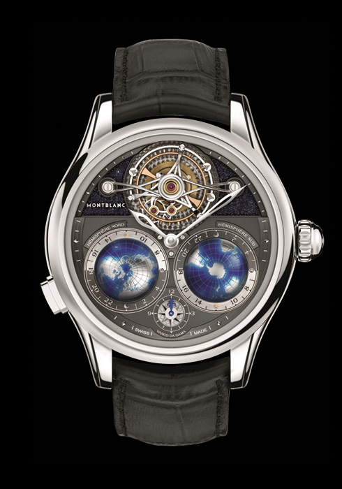 이미 다이얼 디자인으로 압도적인 위용을 자랑하는 모델. 단 18개의 리미티드 에디션으로 선보이는 모델로, 원통형 투르비용과 밤하늘을 고스란히 담은 창이 특징이다. 전설적인 탐험가 바스코 다 가마의 항해에서 영감을 받아 위대한 탐험가에게 경의를 표하기 위해 북반구와 남반구의 결합을 표현했다. 2개의 구체는 인그레이빙과 미니어처 페인팅으로 각 대륙 간의 경계선, 양각으로 표현한 대양까지 섬세하게 완성했다. 47mm에 달하는 볼륨감 넘치는 케이스에 핸드 와인딩 칼리버 MB M68.40가 월드 타임 디스플레이 기능을 발휘하는 것은 물론 3개의 타임 존을 표시한다. 12시 방향의 투르비용은 2개의 반구와 어우러져 더욱 드라마틱한 움직임을 완성한다.