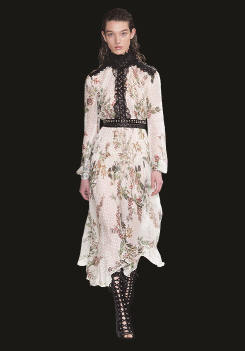 여름 내내 오프 숄더로 아름다운 목선과 어깨 라인을 마음껏 드러냈다면, 올가을엔 빅토리안 무드의 하이넥 칼라로 고전미가 느껴지는 우아함을 발산해보자. 발렌티노, 겐조, 구찌, N°21 등 많은 디자이너들이 네크라인을 높인 하이넥 칼라의 블라우스와 드레스를 대거 선보였다. 빅토리아 시대의 성숙하고 로맨틱한 무드를 살려 하이넥 칼라와 소매를 과장되게 부풀린 디자인이 있는가 하면, 반대로 이를 모던하고 담백하게 풀어낸 스타일도 눈에 띈다. 이 중 베스트로 꼽고 싶은 룩은 섬세한 레이스 디테일이 돋보이는 하이넥 칼라로 여성미를 극대화한 발렌티노의 드레스. 아름다운 하이넥 디테일과 소재, 패턴, 실루엣 등 전반적으로 로맨틱한 빅토리안 무드를 잘 살린 드레스이기도 하지만, 무엇보다 여기에 다소 상반되는 와일드한 레이스업 부츠를 매치해 진부하지 않은 매력적인 룩을 완성한 것이 스타일링 포인트다. |