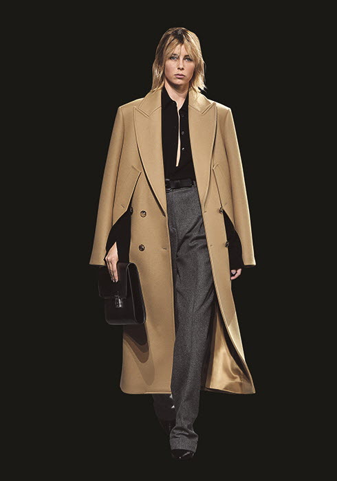 올겨울 단 하나의 코트를 구입한다면 기억해야 할 키워드는 남성의 맞춤복에서 착안한 정교한 테일러링과 고급스러운 소재에 집중한, 각진 어깨라인이 돋보이는 테일러드 코트다. 남성미가 느껴지는 파워 숄더 디자인은 지난 시즌에 이어 올해에도 1980년대 레트로 트렌드의 영향으로 여성 수트와 재킷, 코트 등에서 많이 선보였는데, 특히 이는 발목 가까이 내려오는 긴 기장, 여유로운 오버핏 실루엣의 코트에서 진면목을 발휘한다. 흡사 남성 코트를 연상시키지만, 자로 잰 듯 무게감 있게 떨어지는 깔끔하고 고급스러운 실루엣으로 도회적이면서 카리스마 있는 여성미를 동시에 드러낸다는 점에서 매력적이다. 가장 모범적인 예시로, 딱 떨어지는 어깨 라인이 돋보이는 테일러드 코트를 무심한 듯 시크하게 스타일링한 로에베의 룩을 참고할 것.