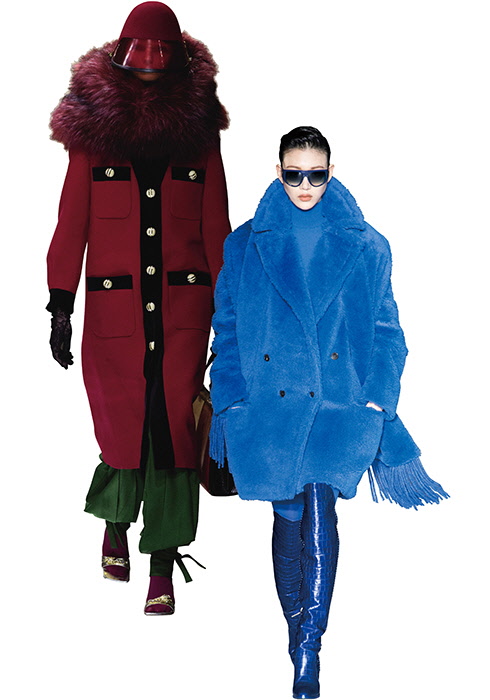 퍼 특유의 볼륨감에 화려한 색감을 더한 것이 이번 시즌 퍼 트렌드의 핵심. 특히 막스마라와 구찌의 런웨이 룩처럼 원색으로 점철된 과감한 스타일링에 도전해보는 것을 추천한다. 모노톤의 심플한 이너웨어와 매치해 우아하고 실용적인 퍼 아우터웨어 스타일링을 선보인 톰 포드의 컬렉션을 참고하는 것도 좋은 방법이다. 찬연한 컬러를 품은 퍼 아이템 하나면 어떤 스타일링이든 비범해질 수 있다.