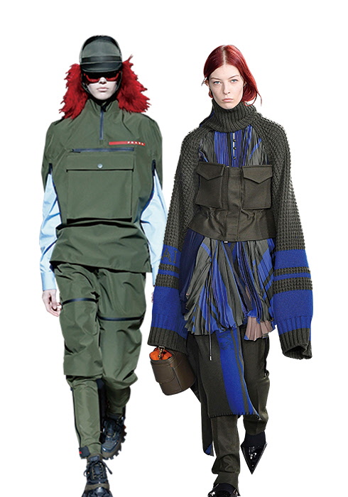 포켓이 덩치를 키워 룩을 이끄는 주연으로 거듭났다. 정확한 각을 이루는 사각 형태와 바깥으로 돌출된 대담함이 특징인 이번 시즌 빅 포켓 디테일은 베이식한 아이템에 스포티한 무드를 부여하는 역할을 톡톡히 해낸다. 대표적으로 프라다는 카키 컬러의 빅 포켓 아노락으로 미래적인 무드를 품은 밀리터리 룩을 완성했고, 막스마라는 터틀넥 풀오버를, 그리고 사카이는 뷔스티에를 통해 각양각색의 스타일로 빅 포켓 디테일을 선보이면서 룩에 색다른 힘을 실었다.