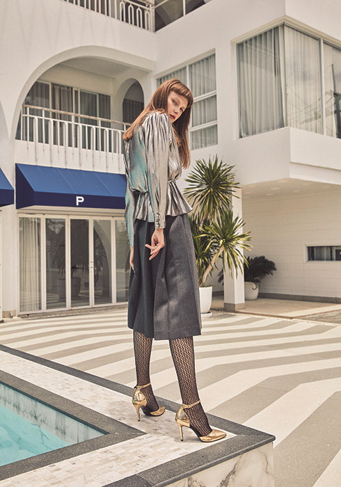 그레이 스커트 2백80만원 모두 구찌. 골드 스트랩 힐 스타일리스트 소장품. |