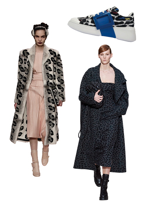 (왼쪽부터 시계방향으로) fendi, valentino, Roger Vivier 이번 시즌, 야생적 관능미를 탈피해 컬렉션의 테마를 드러내는 도구로 사용된 레오퍼드 프린트. 휴머니티라는 주제 아래 유니폼 드레싱, 클래시시즘을 반영한 발렌티노의 피엘파올로 피촐리는 지극히 평범한 그레이 컬러로 변환한 레오퍼드 프린트 코트 룩을 통해 개성을 잃은 듯 보이는, 그러나 고유의 아름다움을 간직한 도시의 여성을 그려냈다. 한편 잠재성을 지닌 여성의 이중성(소프트 파워)을 표현하고자 한 실비아 펜디는 퀼팅 디테일의 핑크 새틴 드레스에 이와 상반된 질감, 컬러, 무드의 그레이 레오퍼드 프린트 퍼 코트를 매치해 전복적 콘셉트를 충실히 재현하는 데 성공했다. |