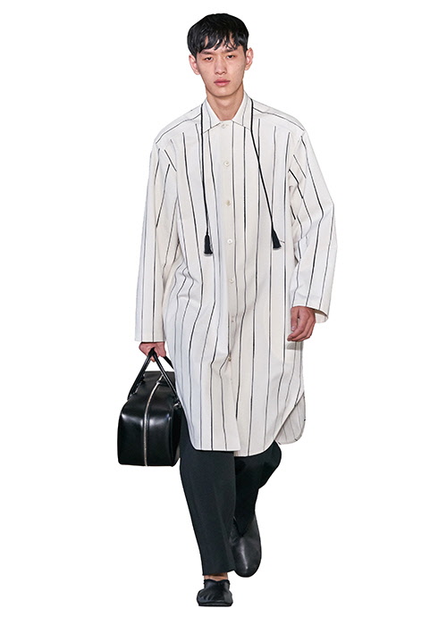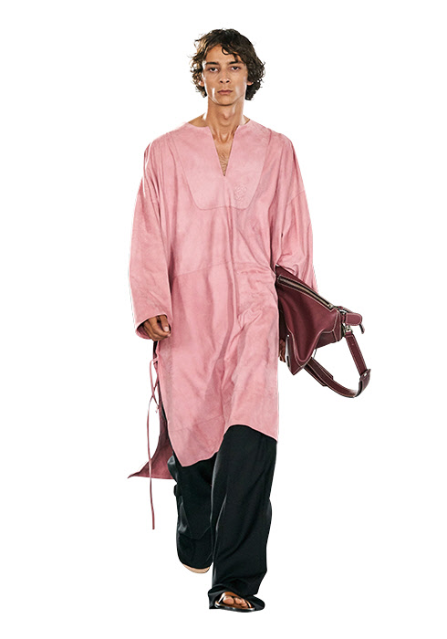 셔츠가 길어졌다. 튜닉이라 해야 할까? 길고 가는 실루엣의 톱과 니트, 셔츠가 루이 비통, 펜디, 로에베, 라프 시몬스 등 트렌드를 이끌어가는 주요 브랜드의 컬렉션에 대거 등장했다. 현대 남성복 실루엣에 대한 고정관념을 뒤흔들며 성의 경계를 오가는데, 그렇다고 완전히 남성성을 잃은 것은 아니다. 생각해보라. 동양의 전통 의상들을! 로에베가 선보인 스웨이드 소재 셔츠는 터키의 카프탄을, 루이 비통의 플라워 프린트 실크 셔츠는 중국의 치파오를 연상시킨다. 이국으로 향하는 시간 여행자의 모습이 이러할지도.